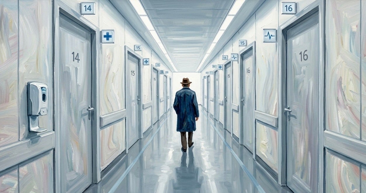 This is the Same Day Assessment Centre. It used to be something else - I think a community hospital, maybe a minor injuries unit before that. Now it’s a pod of consulting rooms off a corridor with a waiting area and a screen that tells you where to sit. I’m here on Tuesdays and Thursdays. Supervising. That’s the word they use. What it means is I’m a GP in a building without a practice, seeing people I’ve never met, for problems that arrived this morning.